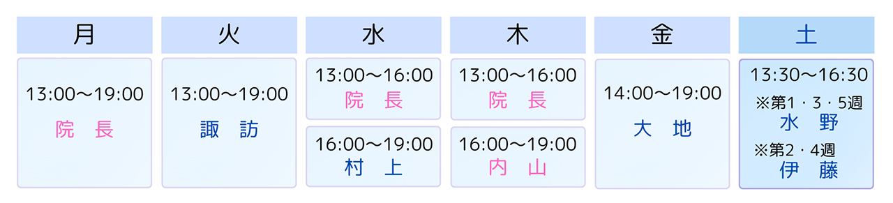 ※代診により医師が変更になる場合がありますので予約時にご確認ください トップページ(News新着記事)にてお知らせいたします